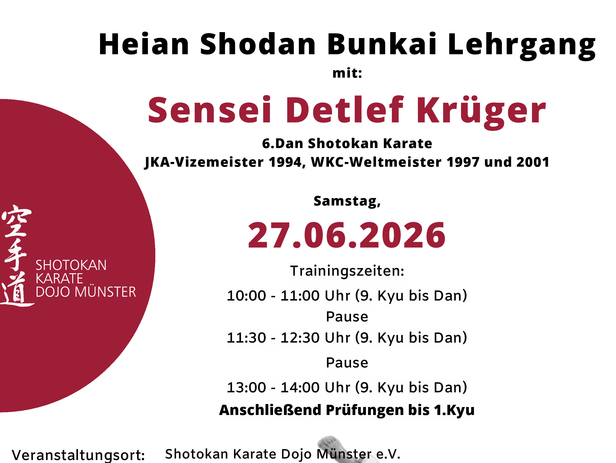 Karate-Lehrgang mit Sensei Detlef Krüger am 27.06.26